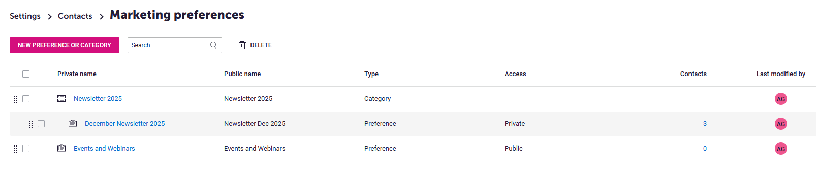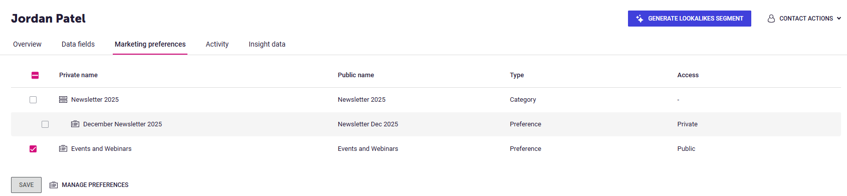 For more details on creating markerting preferences, please refer to the Dotdigital knowledge base: